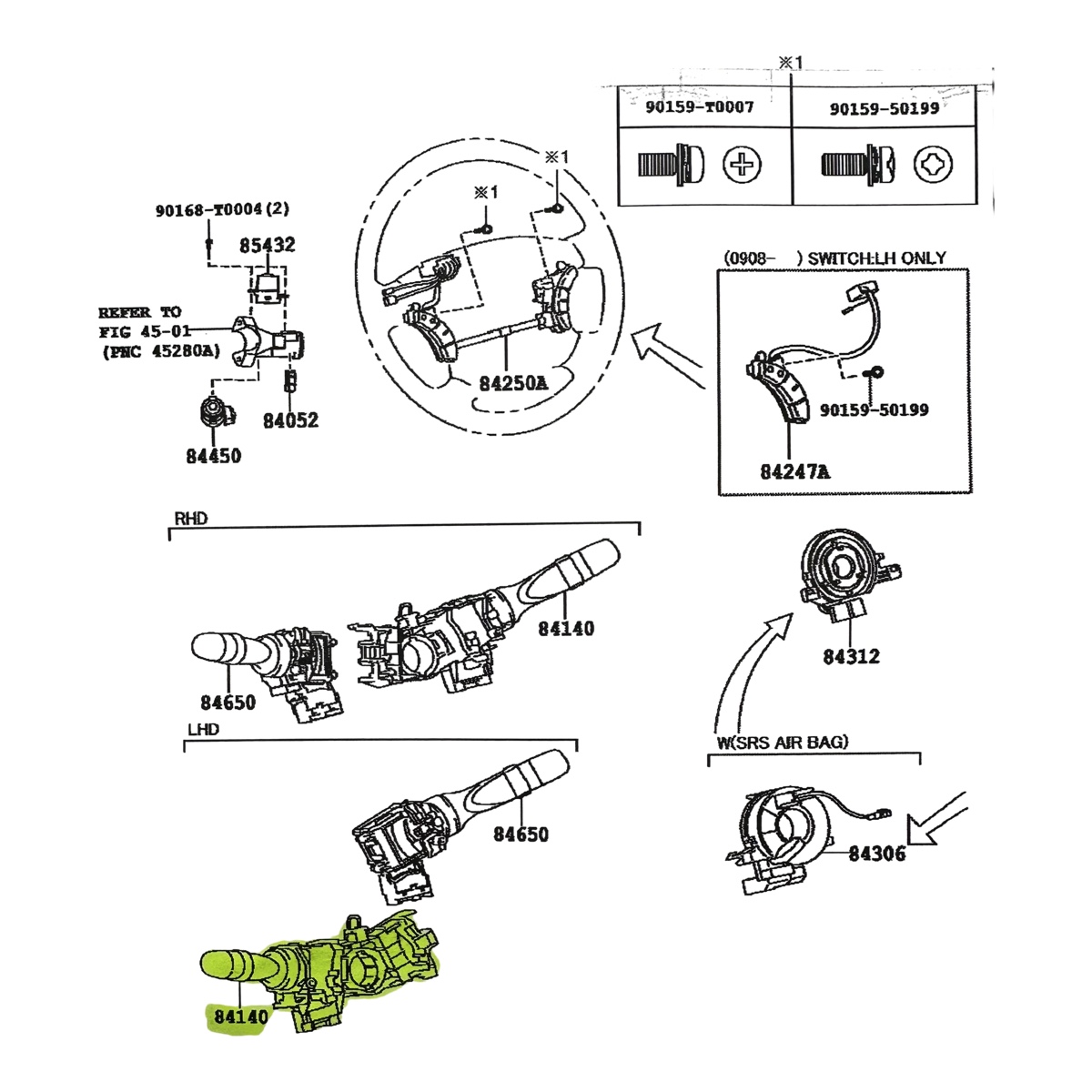 PALANCA LLAVE DE LUCES TOYOTA HILUX 2005-2011 * VER CHASIS *