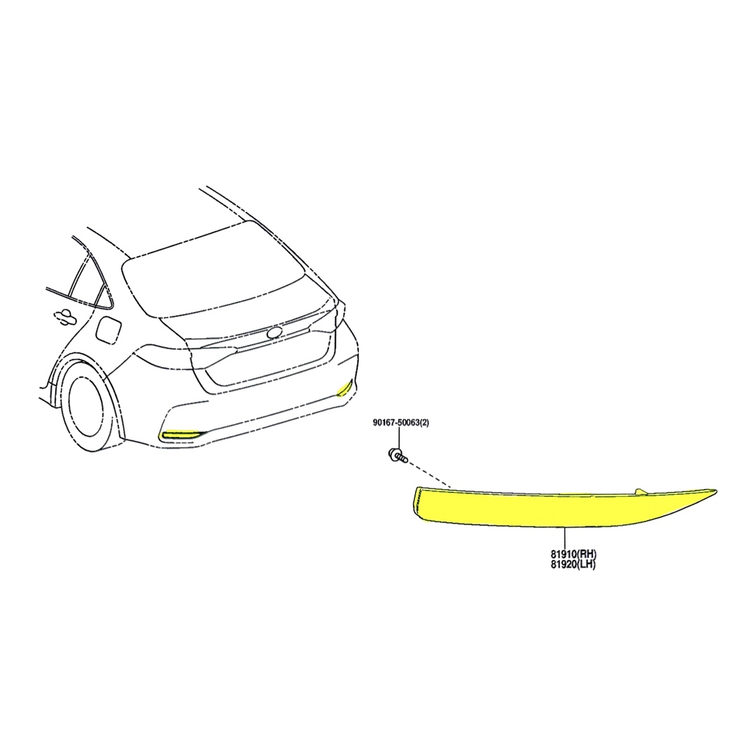 REFLEX PARAGOLPE TRASERO COROLLA 2020-2023 LADO :DERECHOMARCA: ORIGINAL TOYOTACODIGO ART: 8191002330 APLICA AÑOS 2020-2021-2022-2023