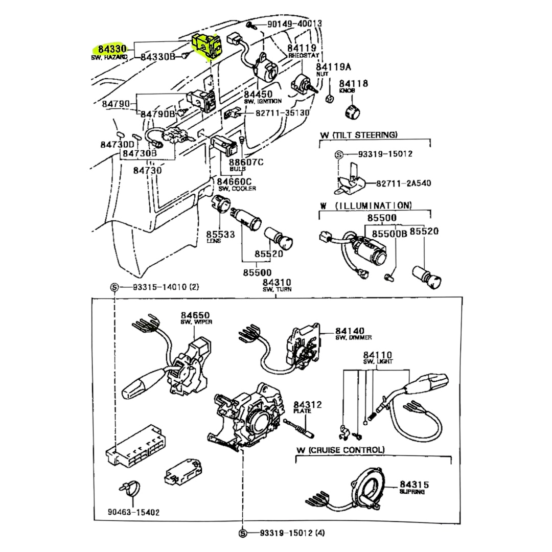TECLA DE BALIZA TOYOTA HILUX 1992-2004 APLICA A MOTOR: 2.8-3L // 3.0-5L